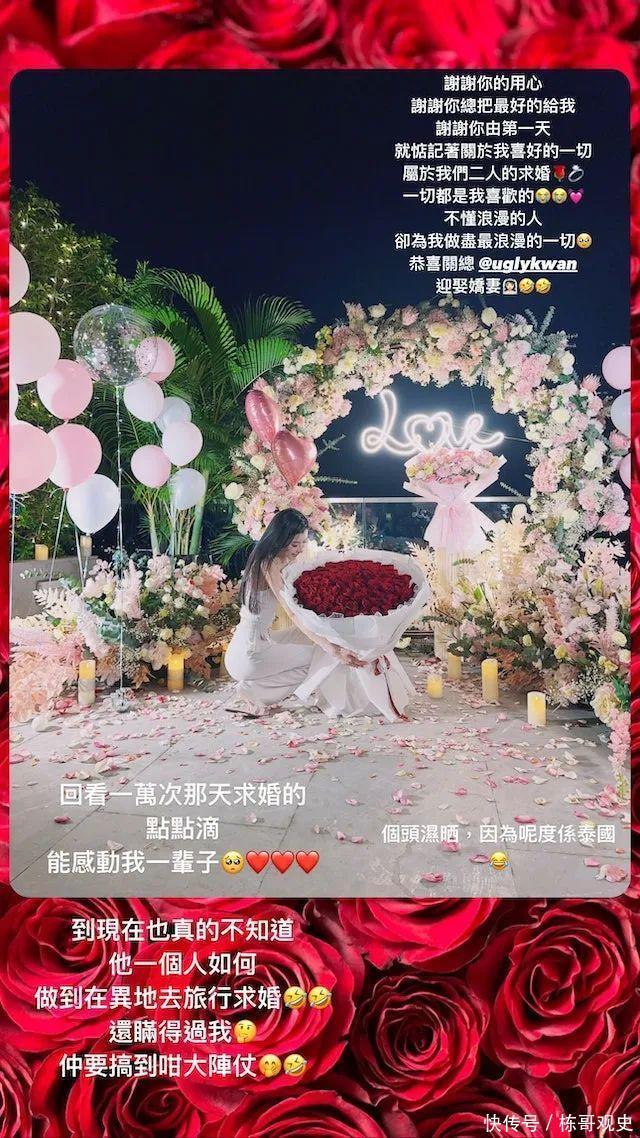 但关楚耀一向很缓助女友,更往往高调点赞!旧年求婚时关楚耀用99支玫瑰花加钻戒,顺利抱得好意思东说念主归,留言:“终末,她嫁给了爱情我也娶了爱情She said YES !! and it’s forever ❤️