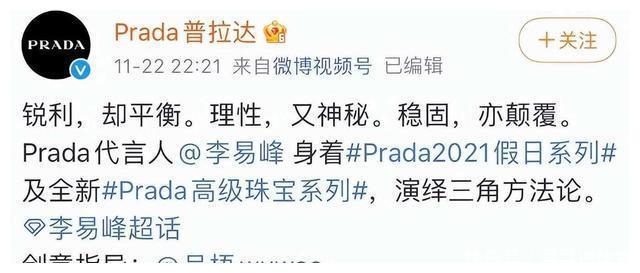 人所共知,Prada在遴荐代言东说念主方面似乎老是充满逶迤。总结夙昔几年,从郑爽到蔡徐坤,再到李易峰,Prada的代言东说念主名单上险些每一位皆阅历了不同经过的负面新闻,皇冠app导致品牌形象受到不小的影响。这也让网友们戏称Prada为“代言东说念主魔咒”的受害者。